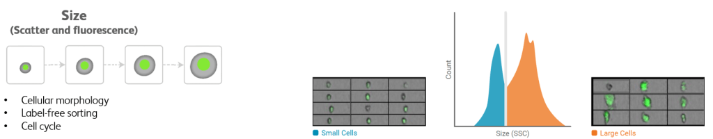 Populations of interesting cells can be identified in many ways in FlowJo, and this is particularly true for data with images. Images can be used to identify populations in ways that are not directly compatible with sorting. Examples of this include visually identifying cells of interest then using the Find Similar Images tool in the BD Cellview Lens plugin to find similar cells, or performing clustering using image derived parameters among the inputs.